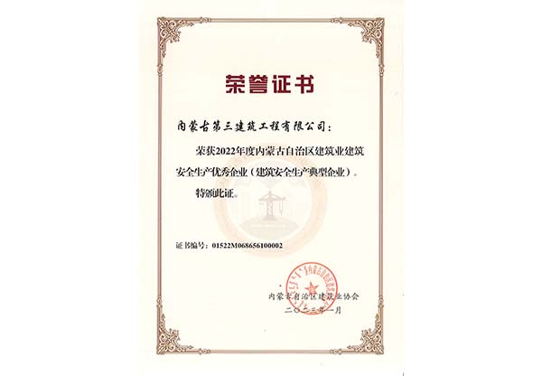 2022年度内蒙古自治区建筑业建筑安全生产优秀企业(建筑安全生产典型企业)