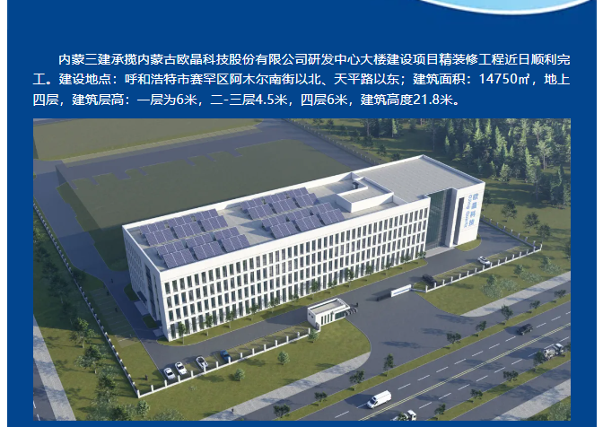 内蒙三建承揽内蒙古欧晶科技股份有限公司研发中心大楼建设项目精装修工程顺利完工