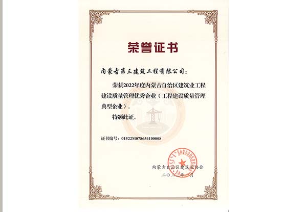 2022年度内蒙古自治区建筑业工程建设质量管理优秀企业( 工程建设质量管理典型企业