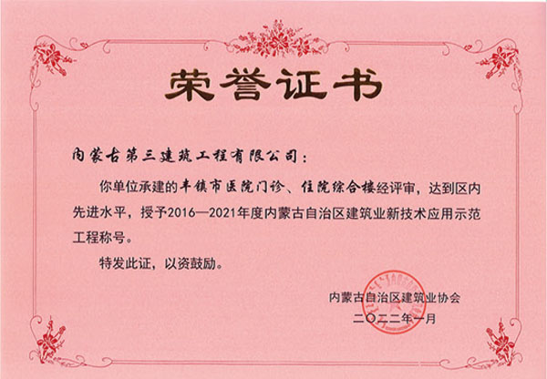 2016-2021年度内蒙古自治区建筑业新技术应用示范工程称号