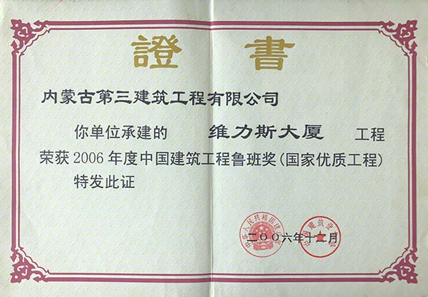 2006年度中国建筑工程鲁班奖(维力斯大厦)