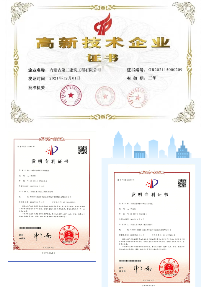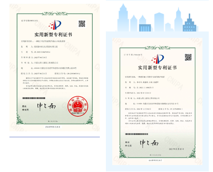 技术科研部主要负责公司施工技术管理,协助项目解决施工过程的技术难题,负责公司重大项目招投标施工组织设计的编制,负责工程技术资料的审核归档。主持公司技术创新工作、高新技术企业维护,指导项目部推广应用“建筑业十项新技术”,多个项目荣获新技术应用示范工程称号。负责各类技术进步奖、国家专利、施工工法、QC成果等奖项的申报,荣获实用新型专利55项,发明专利16项,自治区级工法150项。在施工过程中指导项目积极开展QC小组活动,多次荣获自治区及国家级“优秀QC小组活动”I类成果。