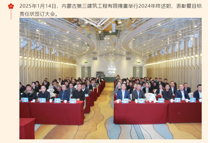 2025年1月14日,内蒙古第三建筑工程有限隆重举行2024年终述职、表彰暨目标责任状签订大会。