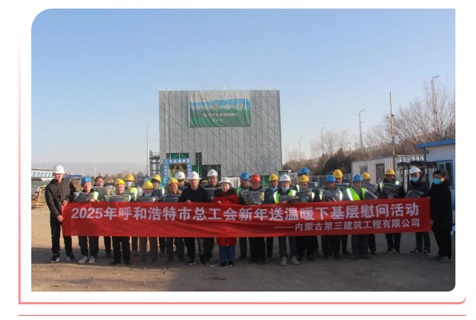 冬意渐浓,岁月情暖,为了进一步服务好冬施项目,让施工人员温暖过冬,在这春节临近的日子里,我企业工会协同安全生产部带着呼和浩特市总工会的关爱与祝福,到四季文园项目部开展送温暖活动。